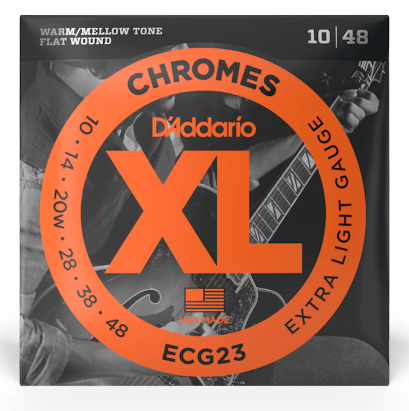 D’ADDARIO CHROMES FLAT WOUND ELECTRIC GUITAR STRING SET, EXTRA LIGHT, 10-48