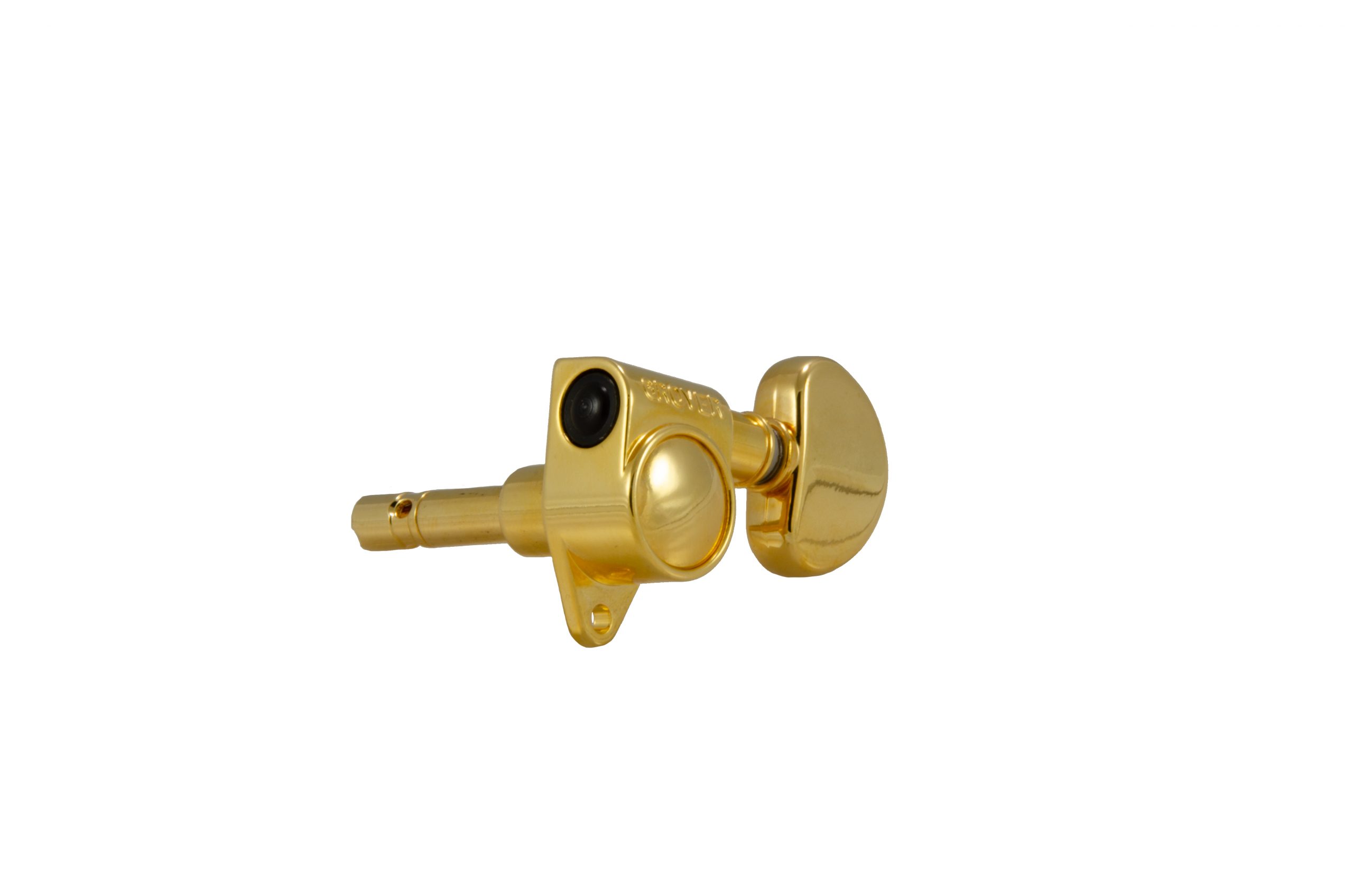 Grover Locking Rotomatics ® give you the ease of use provided by a standard tuner and the positive locking of our internal cam post. Simply insert the string through the string hole, pull to tension by hand and begin tuning. As you start to tune, only the locking cam in the string post turns. Once the string is locked, the string post begins to turn allowing you to bring the string to pitch. In less then one revolution of the string post, you will be in tune, to stay in tune. Gear ratio is 18:1.