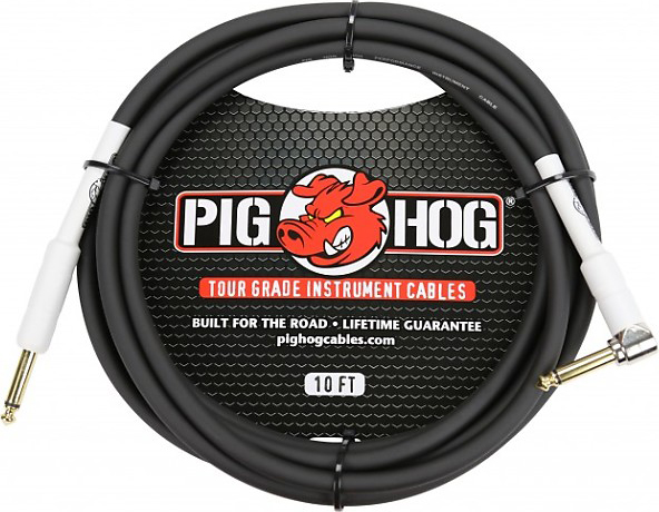 PIG HOG 10′ INSTRUMENT CABLE, 1/4″ -1/4″ 8mm, RIGHT ANGLE