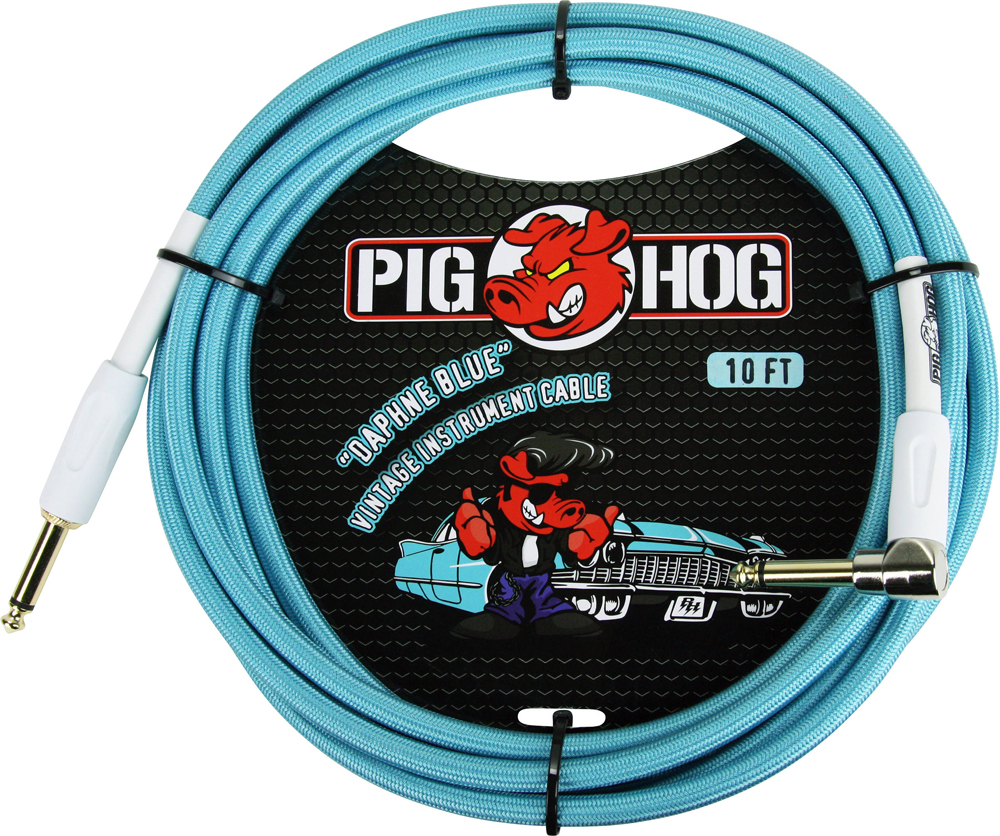 PIG HOG VINTAGE SERIES INSTRUMENT CABLE, 10ft, DAPHNE BLUE RIGHT ANGLE